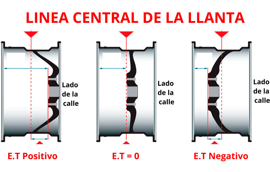 Existen tres tipos principales de ET, y cada uno tiene un efecto diferente en cómo queda montada la llanta en el coche.